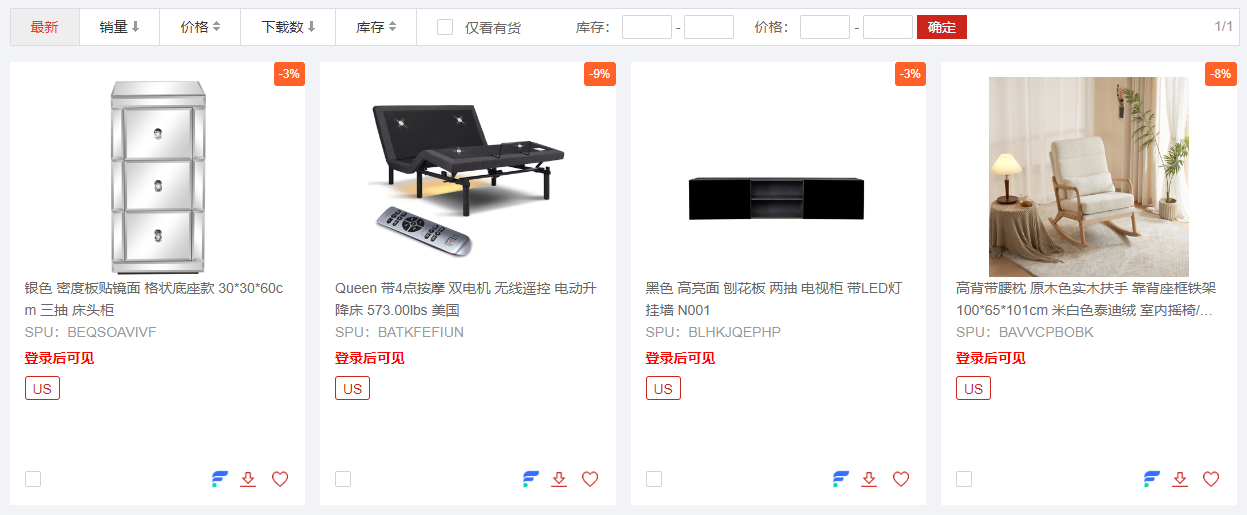 电动升降床、泰迪绒摇椅、床头柜、LED电视柜等卧室家具是赛盈分销结合海外市场消费走势,甄选了适合卖家近期布局的新款式。其中,电动升降床新款在亚马逊上销量排名进入前十;床头柜的销量排名突破至第2位,新品潜力大为可观。