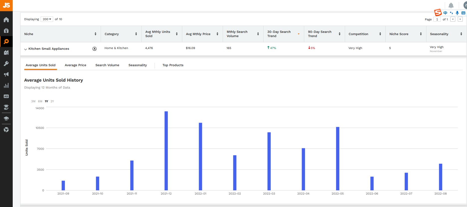 在第一二季度的过渡下,美国厨房小家电销售将逐渐回归理性,下半年其消费趋势也迎来一波增长。相对而言,卖家布局的盈利空间也会增加。根据Jungle Scout数据研究发现,厨房小家电近30天搜索量增长了47%,说明美国消费者已经开始增加对厨房家电的购物需求。