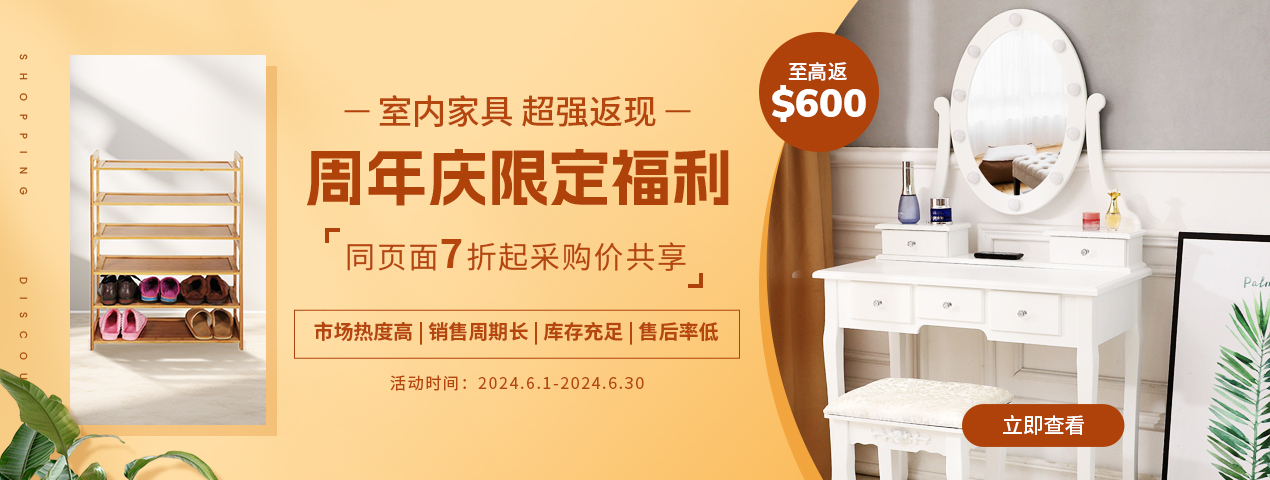 · 热销品类:家电 / 卧室家具 / 客厅家具等