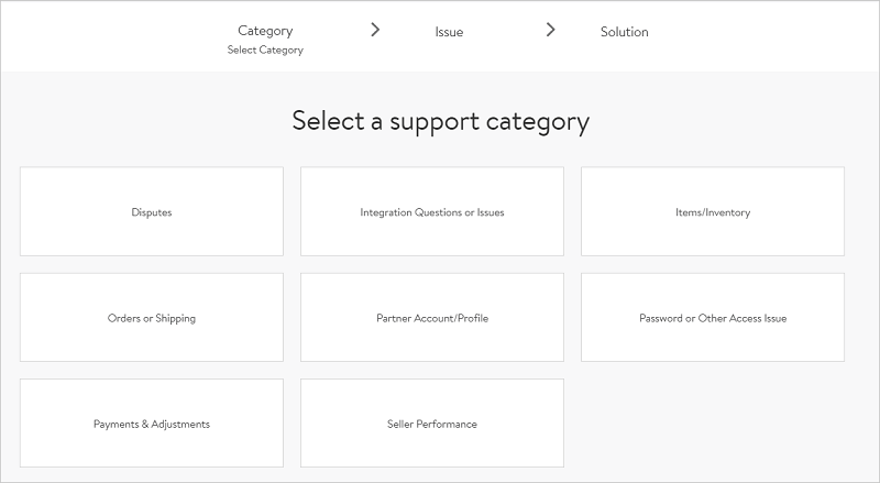 这里需要额外注意一点的就是,在你继续创建case之前,可以先查看官方建议的文章。若文章中罗列的解决方案能解决你现有的问题,那就选择 “Yes”,这样就不需要再创建case了;但如果不能解决现有问题,就选择 “No”,然后根据不同问题,通过一种或多种方式去联系Seller Support。由于部分问题分类可以支持Live chat功能,那么卖家就可以在Live chat支持的时间里进行在线联系,也会很方便;当然,还可以选择通过邮件的形式去开case。