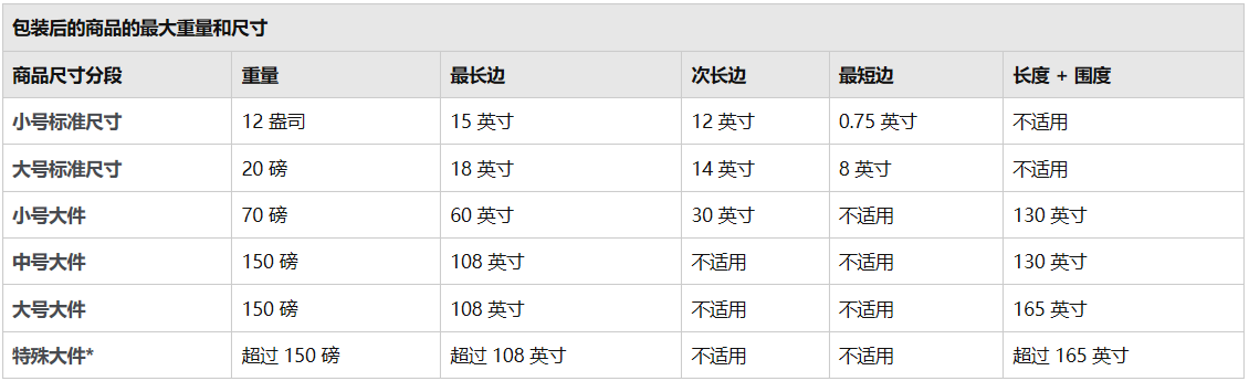 我们还要了解到的是,特殊大件分段适用于其尺寸、重量、特殊处理要求或其他限制,必须使用特殊配送方式配送的商品。如果满足以下任意一个条件,那么我们的产品将被划分为特殊大件并以此分段的标准收费: