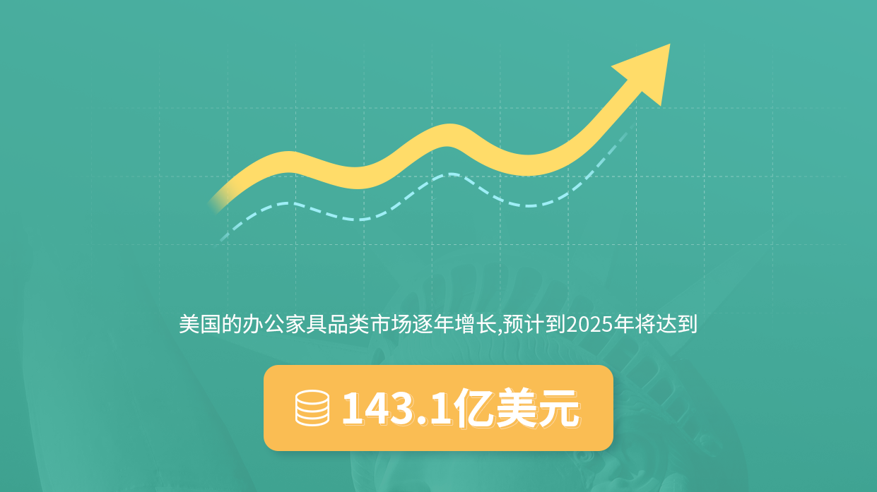 除了商业场所外,随着远程办公、居家办公的兴起,进一步推动了办公家具的发展。另一方面,消费者对办公环境的不断追求,各类办公设备及款式出现在大众面前。尤其美国地区占据最大的市场份额,办公桌椅、文件柜、书架、咖啡桌、会议沙发及相关设备的客单价远高于其他国家,预计到2025年办公家具品类的消费将达到143.1亿美元。