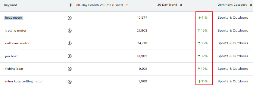 在亚马逊平台上, 主关键词“boat motor”及同类搜索词均出现搜索量上涨的趋势,市场零售在300美元以上。