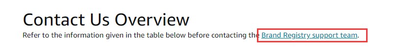 第四步:进入Contact Us Overview页面之后,我们选择Brand Registry support team。