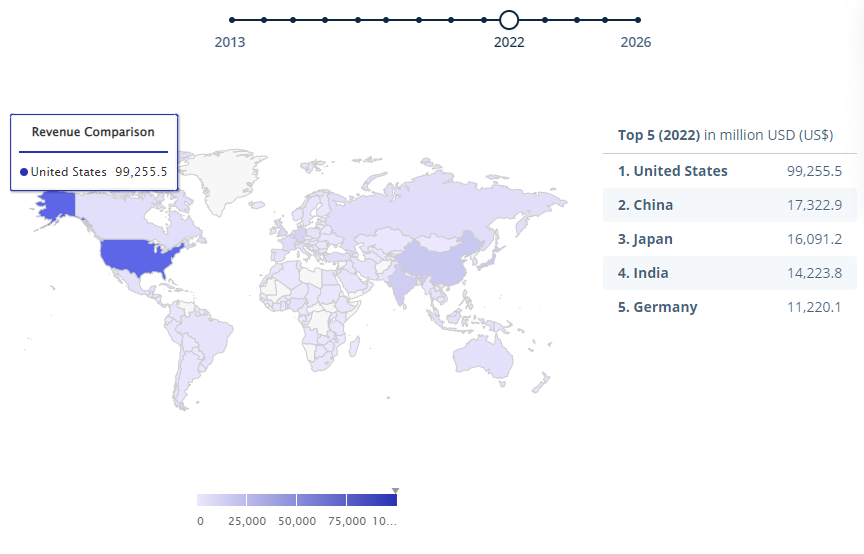 在全球草坪和花园市场中,美国、中国、日本、印度和德国成为主要的贡献力量,而美国将以992.555亿美元的收入占据最大的市场份额。