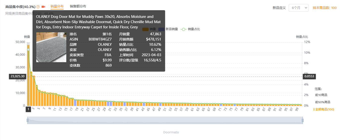 从亚马逊过去半年上新的数据来看,头部卖家销售的一款橡胶地垫,一个月可以卖出近5万单。