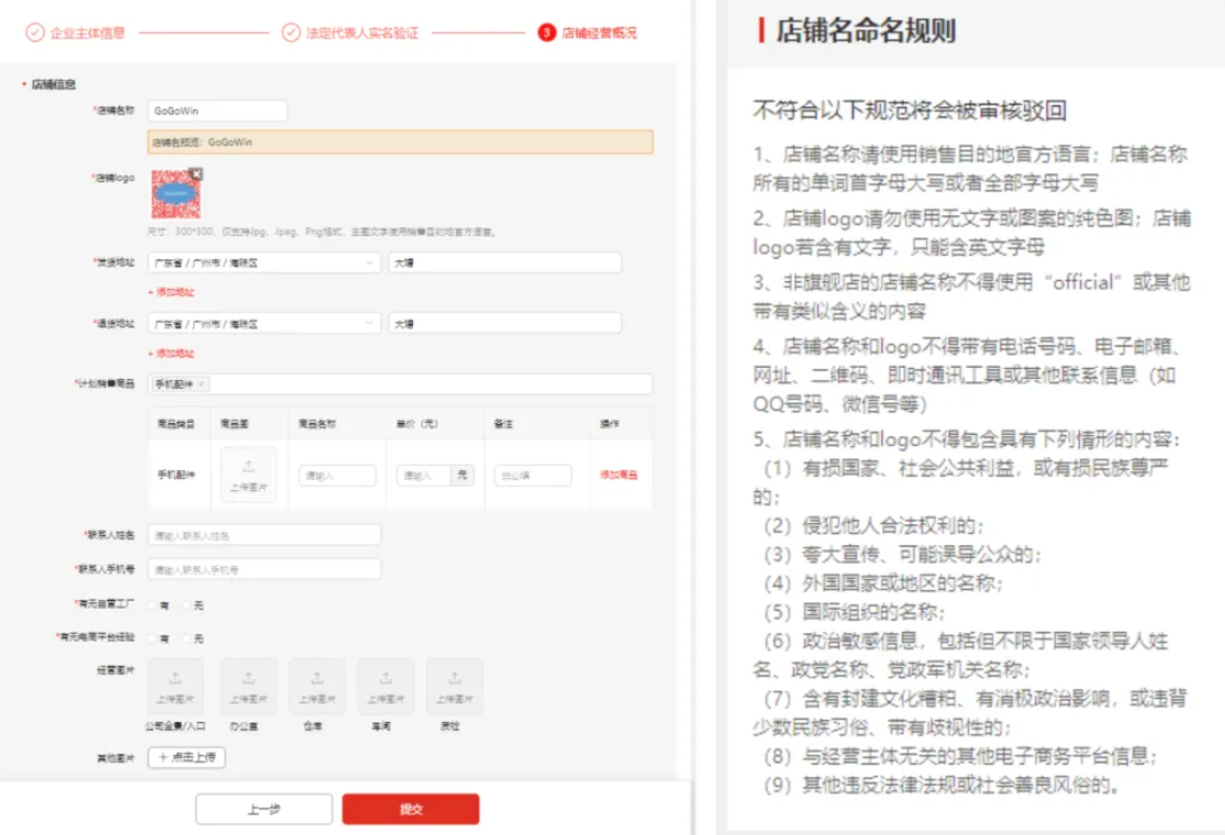 包括店铺名称、店铺LOGO、经营类目、店铺简介等信息。请确保所提交的资料清晰、准确,能够充分展示自己的店铺特色和优势。