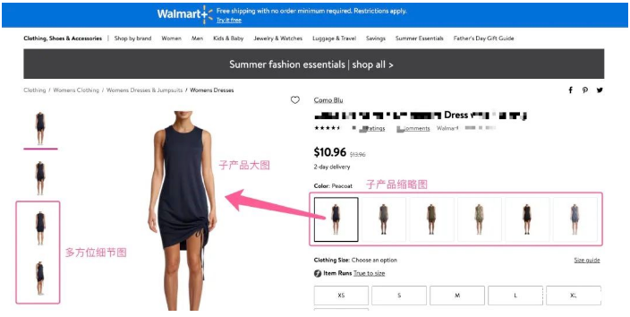 另外,沃尔玛多属性产品相比其他平台,还有一个图片,即多属性产品中子产品的缩略小图(下方展示图)。据大卖家的反馈,填写子产品缩略小图,可以大大提升下单成交的转化率。