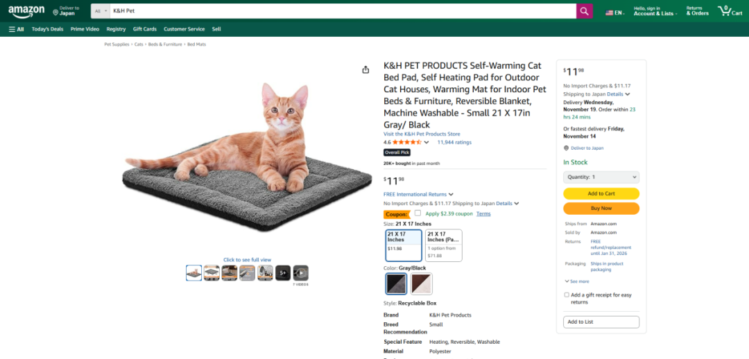 亚马逊上,关于恒温宠物屋、宠物加热毯的搜索量分别暴增了203%和156%,欧美市场加热类宠物用品销量同比增长超40%。
